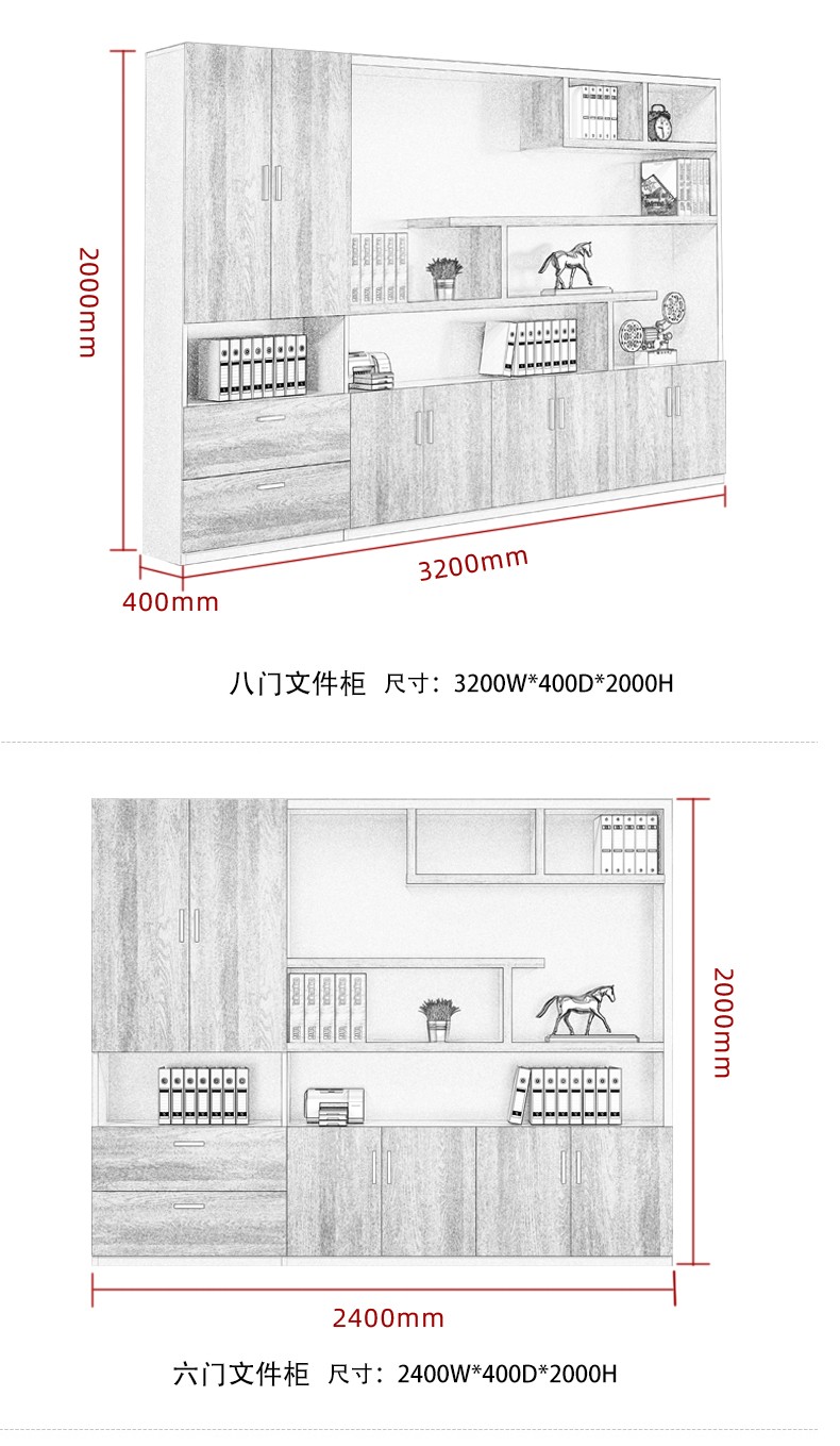 描   述: 新款文件柜 2.4m*2.0米*0.4m(長高深)